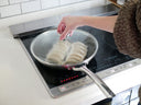 コーティング加工ではないので、急な温度変化にも対応。調理後すぐ、冷水につけて洗えるので、後片付けもスムーズです。