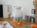 毎分21,000回の回転で、ほんとうに一瞬で下ごしらえ完了。約500mlの大容量なのに、収納に困らないコンパクトさも嬉しいポイントですよね。