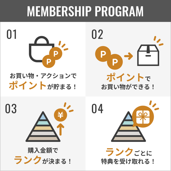 購入金額に応じた会員ランクをご用意しています。