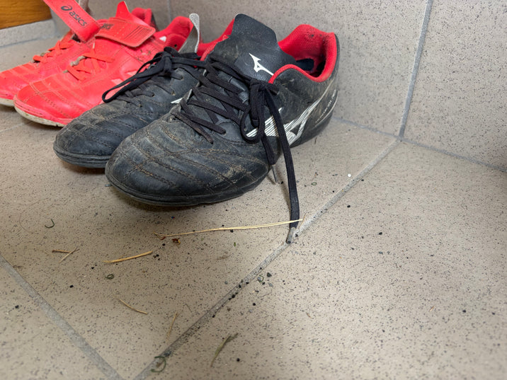サッカー帰りの息子たちが通った後は、砂、土、そして芝生の“お土産”でいっぱい。